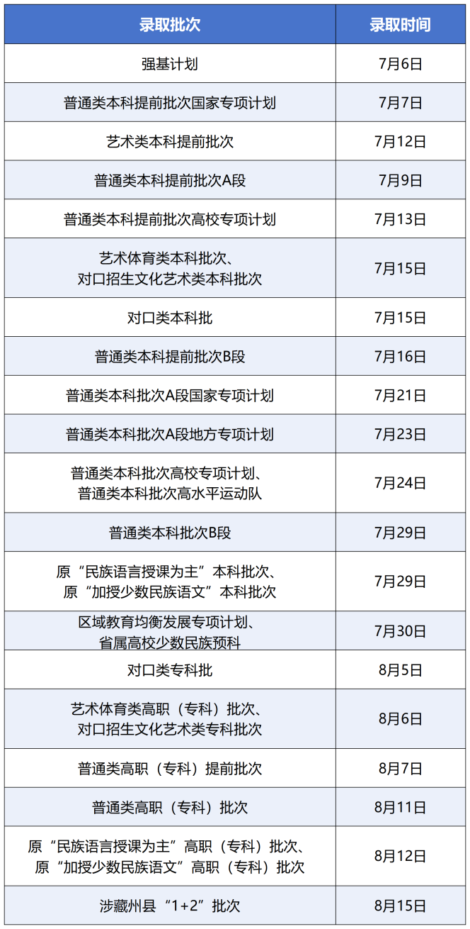 附[各批次预计录取时间]